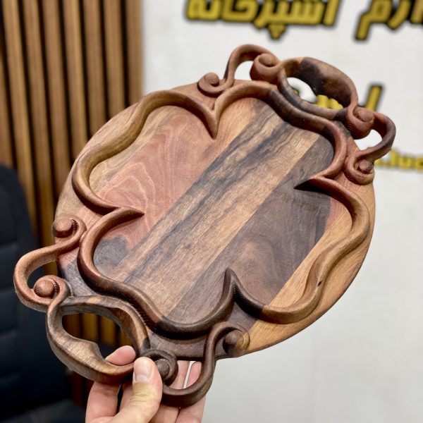 سینی خراطی چوب گردو پایه دار